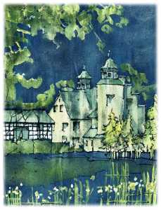 Schallenburg in Brühl-Schwadorf - Aquarell mit Tusche