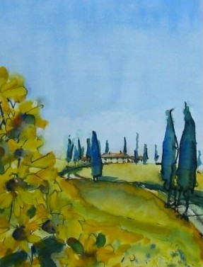 Haus mit Zypressen